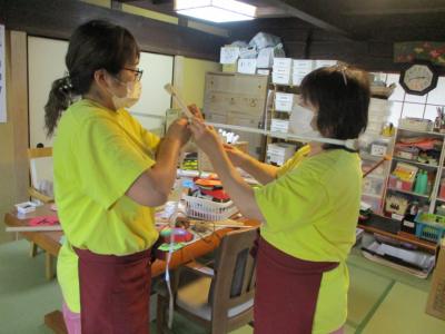黙々とご自分の名前の入った提灯を作る父と母ですひらめき