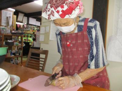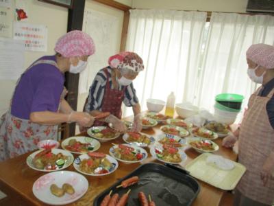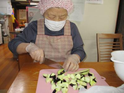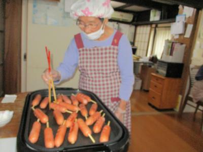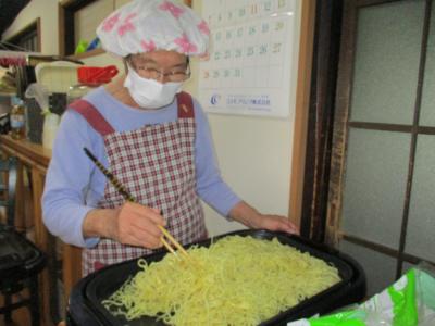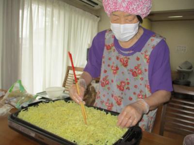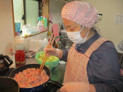 こちらでは、本日の昼食の縁日メニューをクッキングされる皆さんの姿。