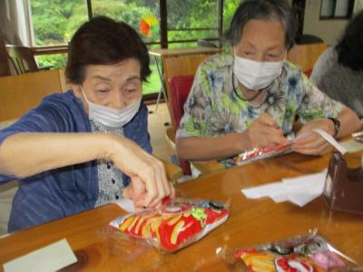 ヨーヨー釣りの釣り針を製作して下さっているお母さん達です。