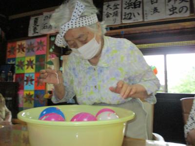 ヨーヨー釣りでは色とりどりのヨーヨーに目を輝かせながら楽しまれる皆さん。