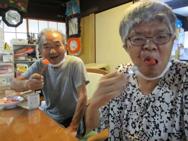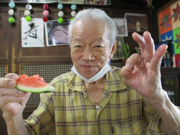 スイカを召し上がり、笑顔いっぱいのお父さん(*^-^*)