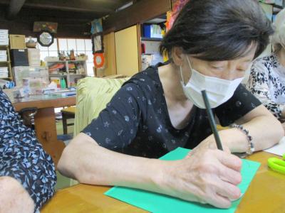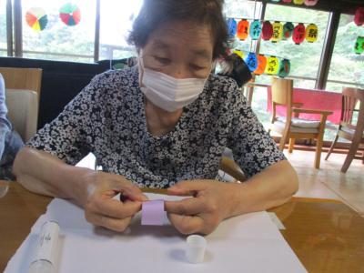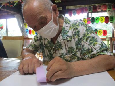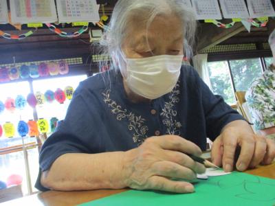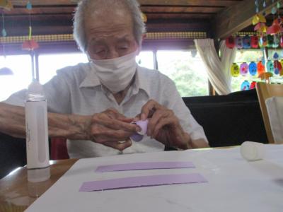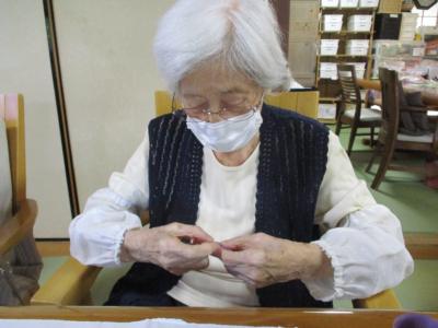 さて午後のレクは季節の吊るし飾りづくり