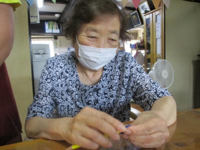 集中していた母ですがカメラを向けると