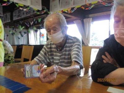 聞き取りづらい時には、スタッフが読み札を見せて優しくフォロー