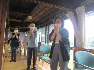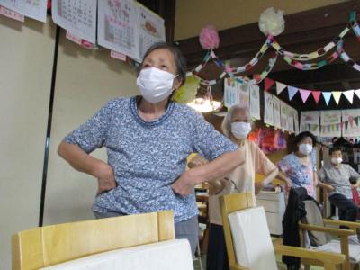 朝の歌謡体操ではリズムに合わせてしっかりと