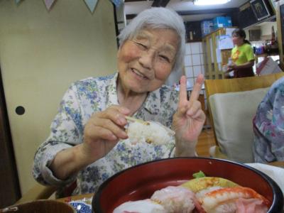 久しぶりの大好きなお寿司に箸が止まらない父母たち