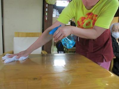 良く触れる手すり等も消毒を随時行いコロナ感染対策に