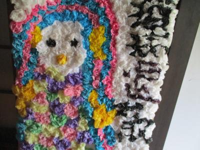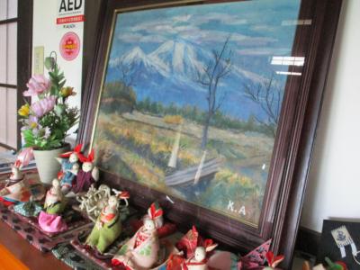 玄関には過去の作品と母の趣味である貼り絵を飾らせていただいております