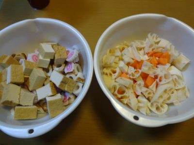 固い野菜と練り物で分け 煮込む順番を考えます![]()