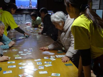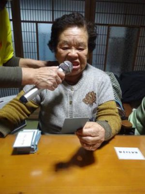 立ち上がって勝負に挑む母たち 読み手も真剣です![]()