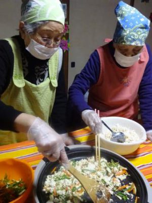 切った野菜やお肉は、こちらの母達が愛情を込めて