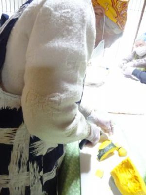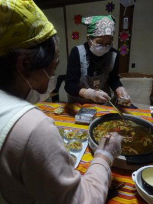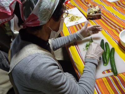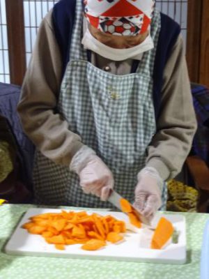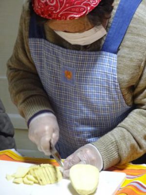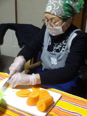 さっそく母達がたくさんの野菜達と格闘中![]()