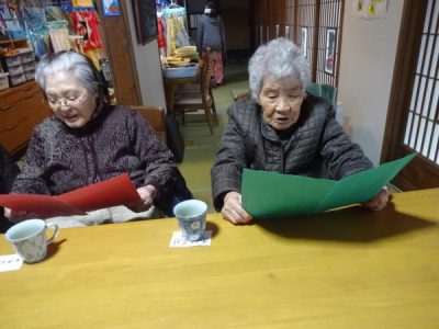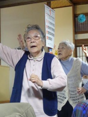 ぼけたらあかんの唱和、合唱、歌謡体操で