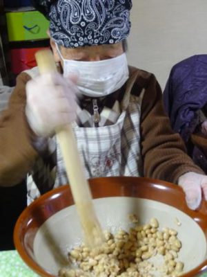 旬の野菜を入れ 擂った大豆で味噌汁を作ってます