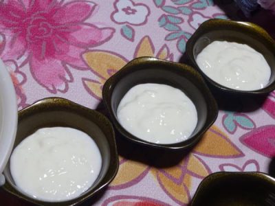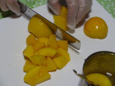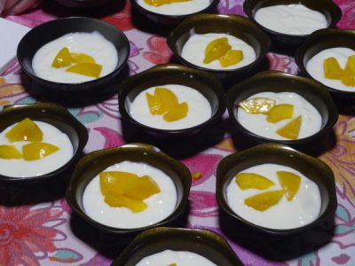 ヨーグルトの上には 色鮮やかな黄桃がのせられ