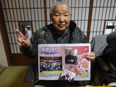 堀口オーナーも父や母達に日頃の感謝の気持ちを伝えに