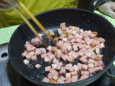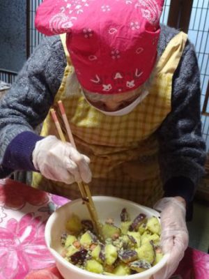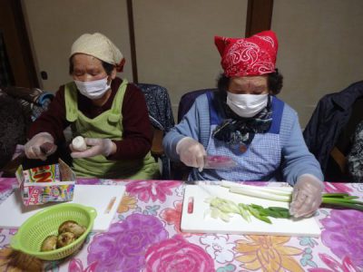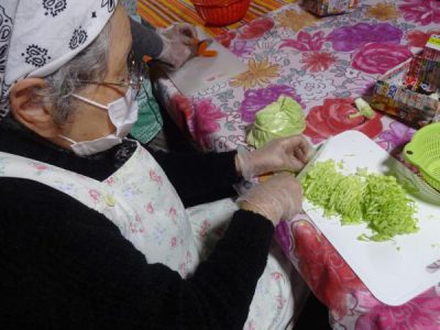 野菜を細かく切ったり、じゃがいもの皮を剥いたり~と