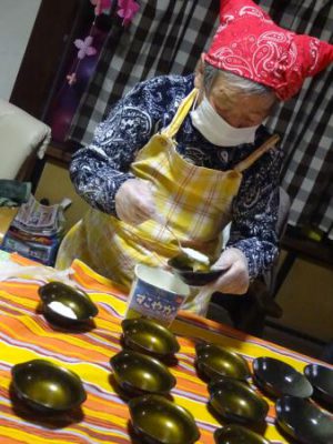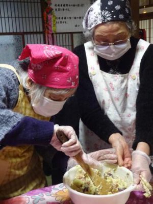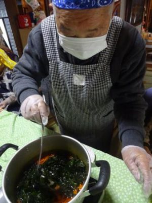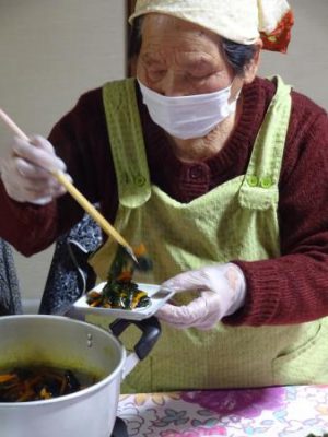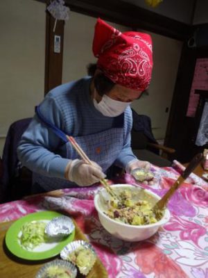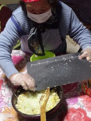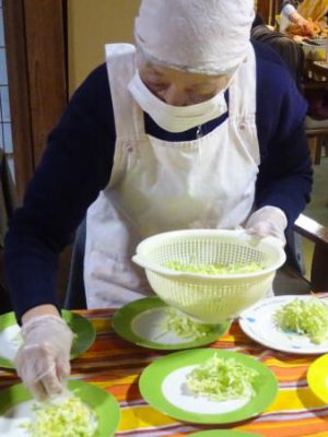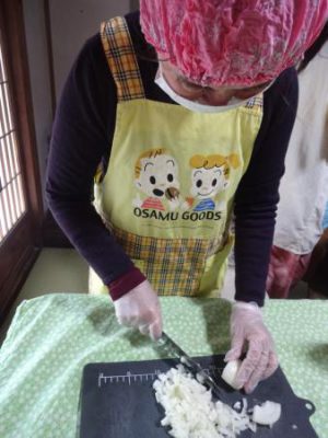 さっそく母達がたくさんの野菜達を刻んでいきます