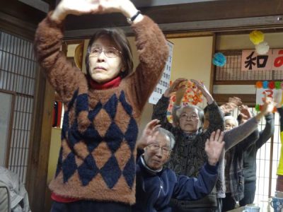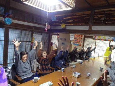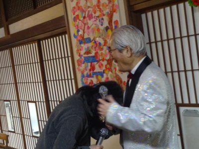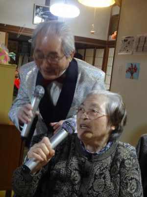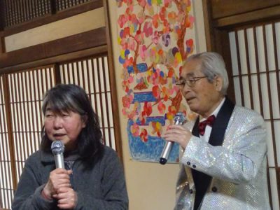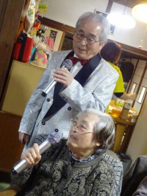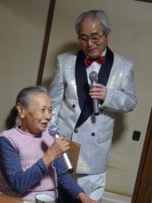 お花ちゃんをみんなで歌って一座の歌謡ショーは
