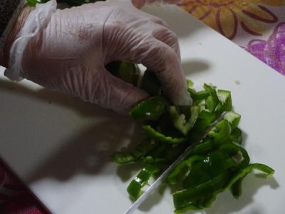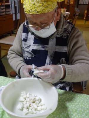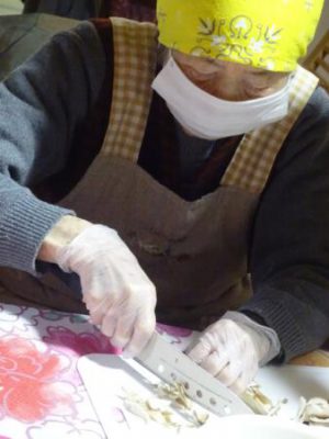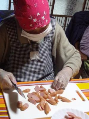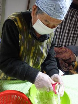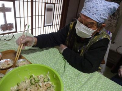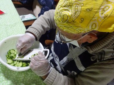 父達も母達に負け時ときゅうりをスライスしたり