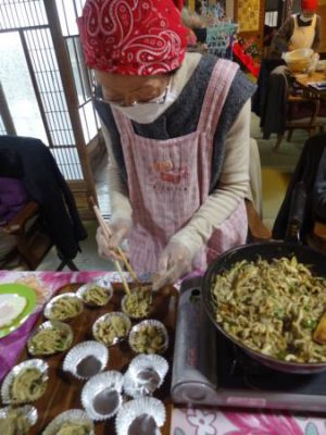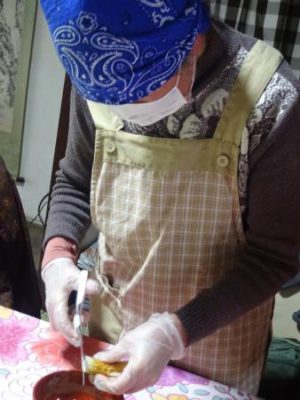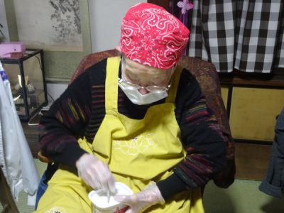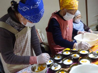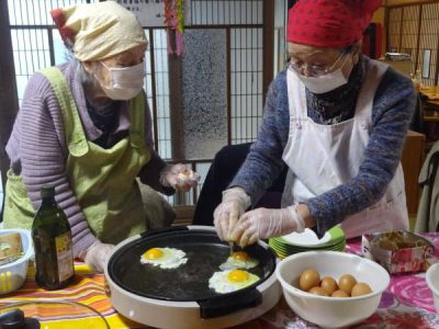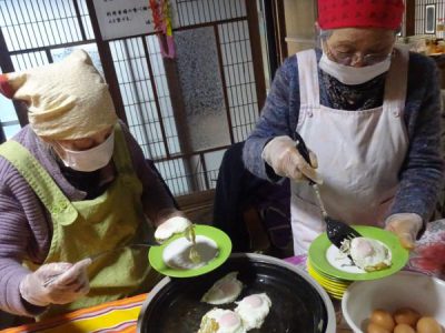 こちらの母達は、仲良く卵割り