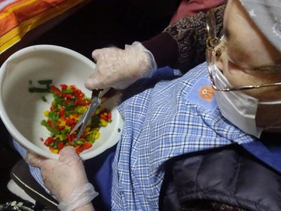色とりどりの野菜達を母達が切っていきます