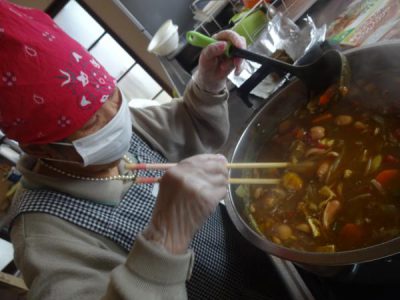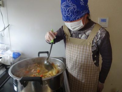 二人の母達が交代でカレーに愛情を入れていきます