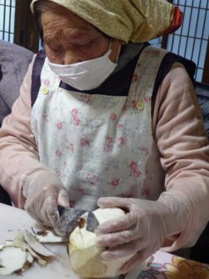 皮を剥くのも一苦労あせあせ (飛び散る汗)