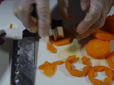 人参だって 一工夫で 星型にすれば★ 可愛さ満点 黒ハートわーい (嬉しい顔)
