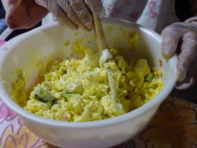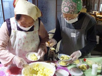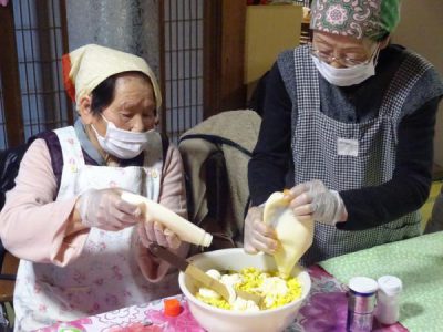 2人仲良く 手際よく盛り付けたら 完成で~するんるん (音符)
