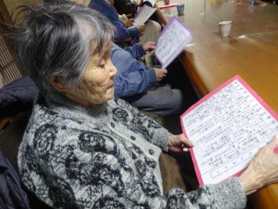 「ぼけたらあかん」の唱和 暗記した人は見ないで挑戦