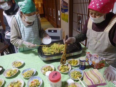 仲良く協力しての盛り付けです