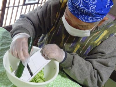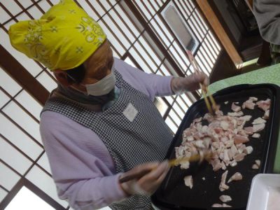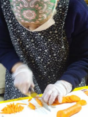 皆さんの協力により今日もおいしい昼食が完成しました手 (チョキ)