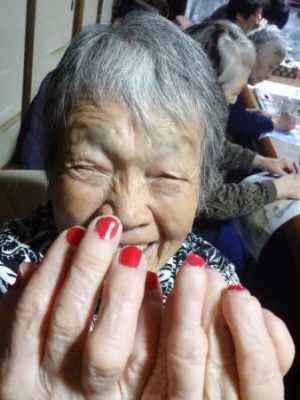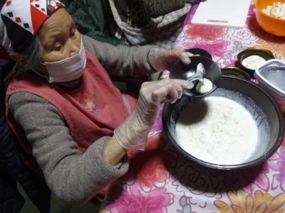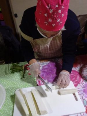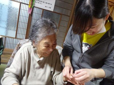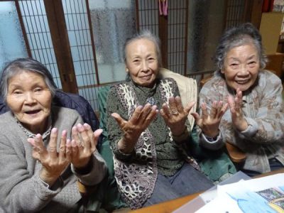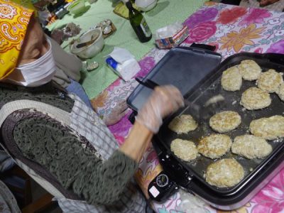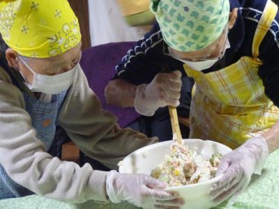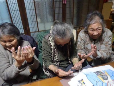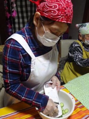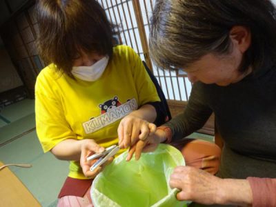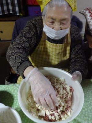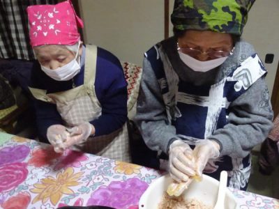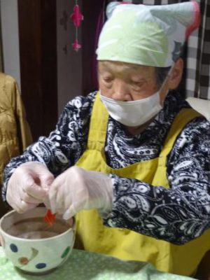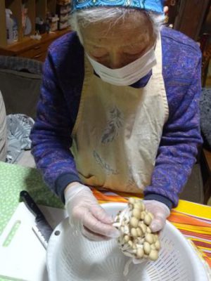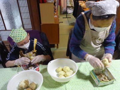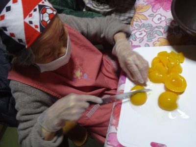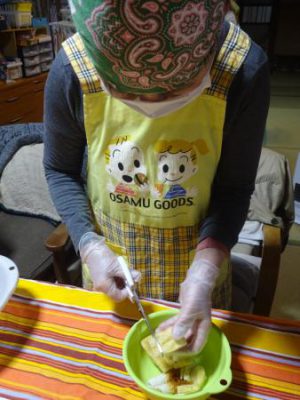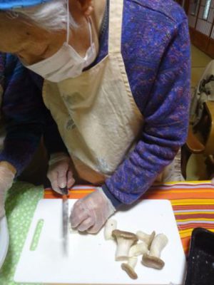 蒸かし芋の皮を剥いたり と手を使った作業を