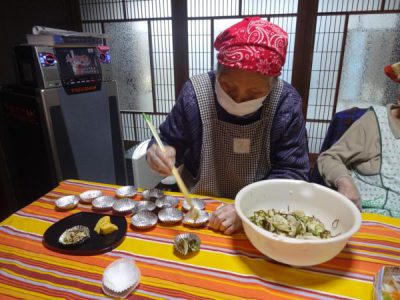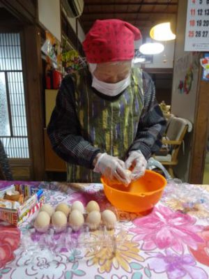 沢山の玉子割りから昼食作り