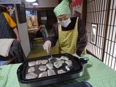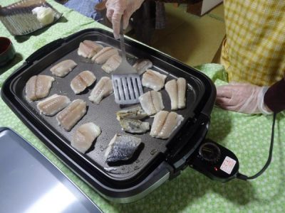 ホットプレートで焼いているのは 今が旬の
