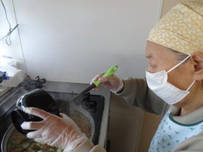 盛り付けが完了する頃には 台所で味噌汁が完成