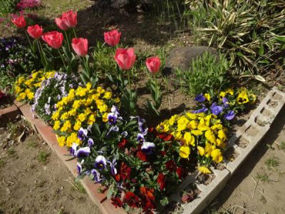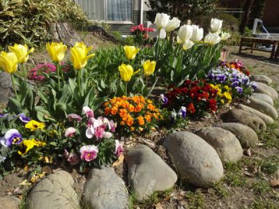 和みの幸望庵の玄関近くの花壇には色鮮やかに~
