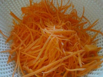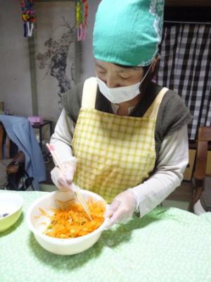 人参ラペ作り・・・枝豆とレーズンも入れてみました