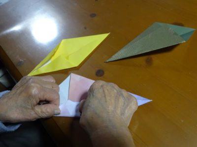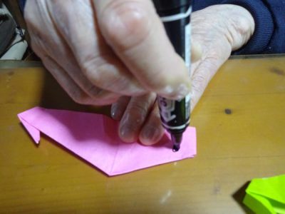 好きな色の折り紙を選び折りたい枚数も決めていきます