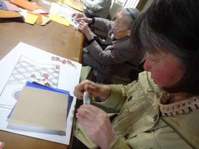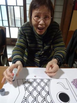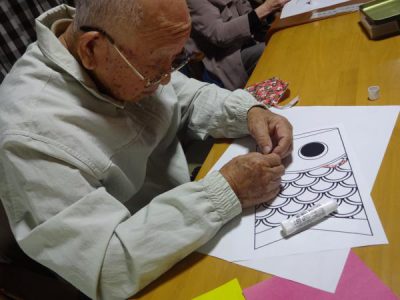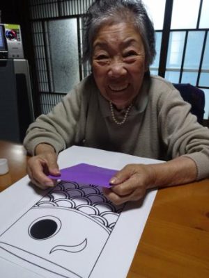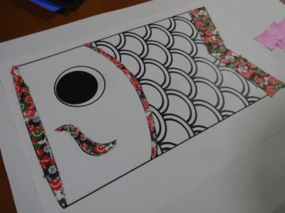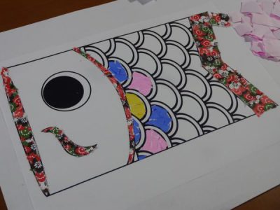 午前は、5月に向けて鯉のぼりのちぎり絵