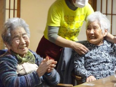 父や母達の笑顔が