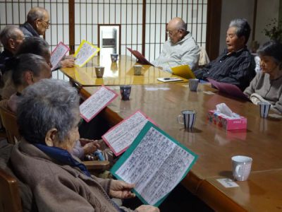 ボケたらあかんの唱和も、背筋をしっかり伸ばして
