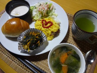 炒めている間に、豆乳バナナヨーグルトを盛り付けたり