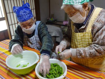 枝 豆 と 干 し エ ビ の 塩 昆 布 和 え