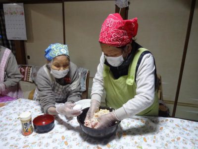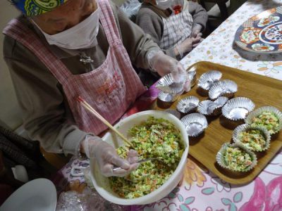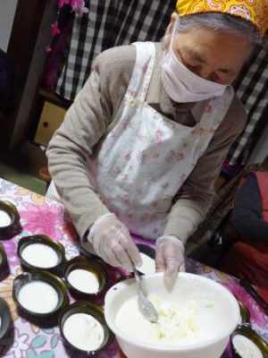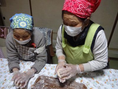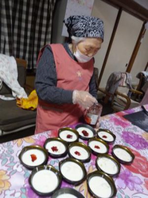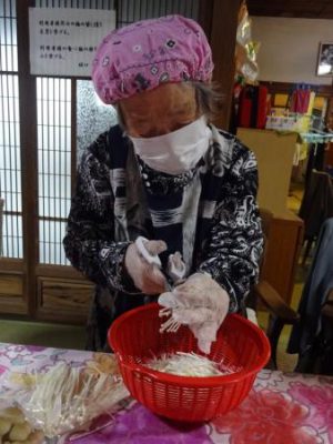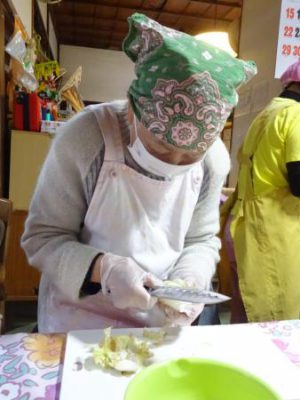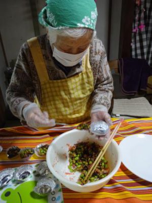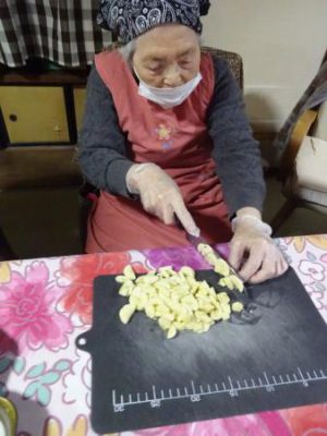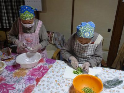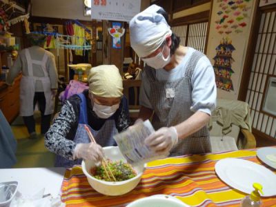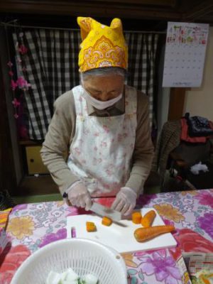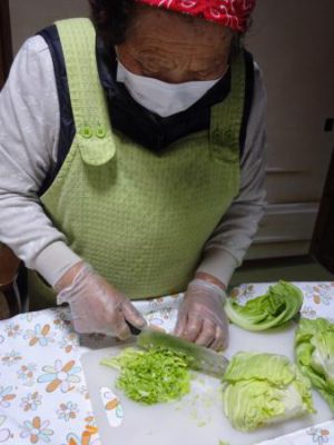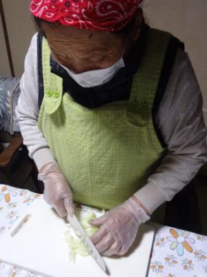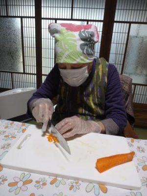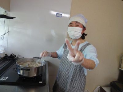 キッチンでは、お味噌汁作りのお手伝いを・・・