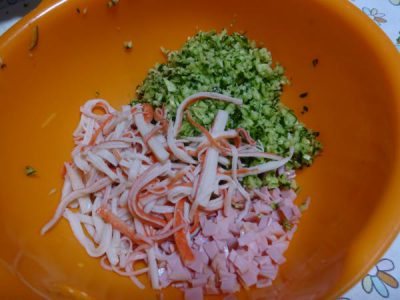 さっそく、キャベツ・人参・きゅうり・ハムをみじん切りに
