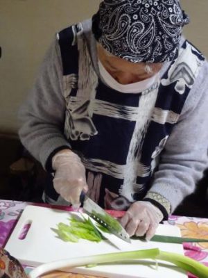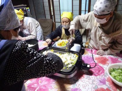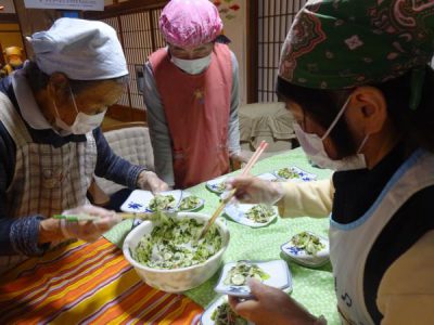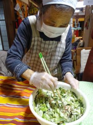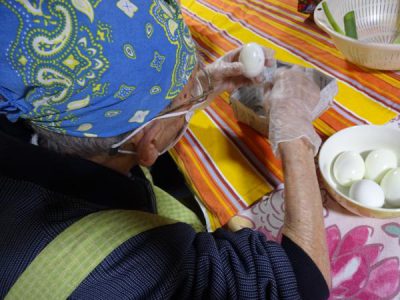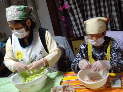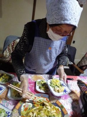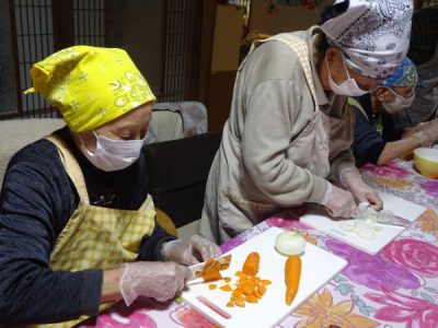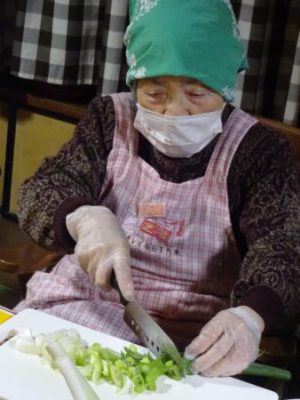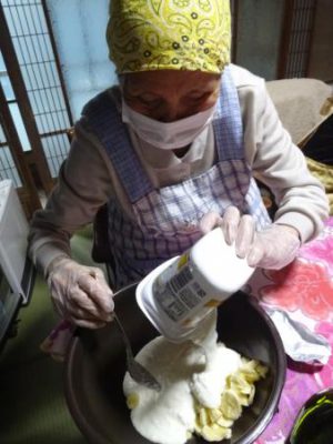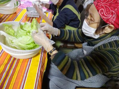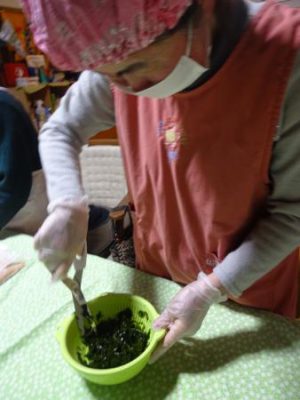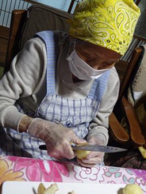 エプロン・三角巾・手袋・マスクで身支度を整えて・・・