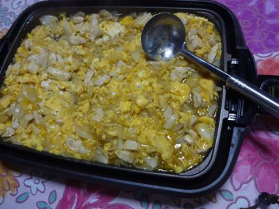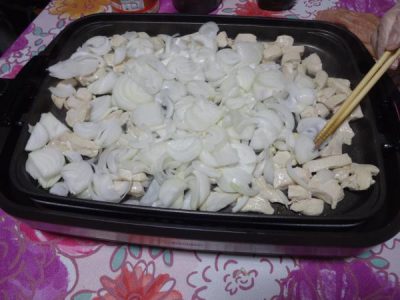 ホットプレートで 玉葱と鶏肉を炒めたり