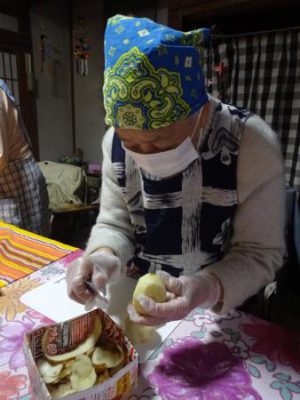こちらの母達は野菜の皮を